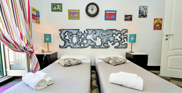Situato al quarto piano, Moka Top è l’unico dei nostri appartamenti dotato di balcone, accessibile da tutte le camere. Decorato con opere d’arte esclusive ed originali, sempre ispirate alle icone del made in Italy, Moka Top è il risultato di anni di ospitalità, in cui abbiamo fatto tesoro dei consigli e delle opinioni di ospiti e amici, per poter realizzare uno degli appartamenti più versatili ed accoglienti.